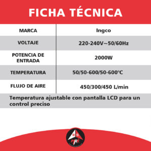 PISTOLA DE CALOR 2000W CON REGULADOR DE TEMPERATURA +ACCESORIOS+ MALETIN, HG2000581