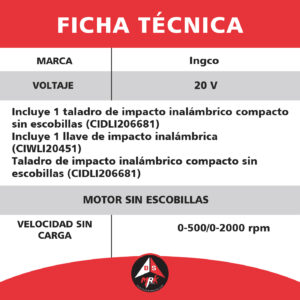 Kit INGCO combinado inalámbrico de 2 PCS CIDLI206681,CIWLI20451 CKLI20286