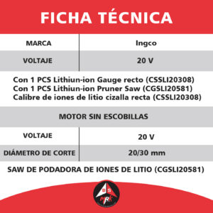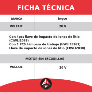 Kit INGCO combo de 2 pcs de 20V CIWLI2038 HWLI35261, COSLI23011