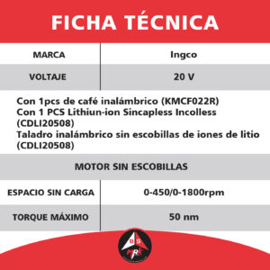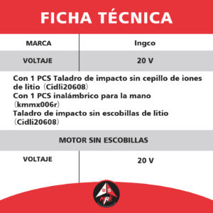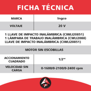 Kit INGCO combinado inalámbrico de 2 PCS CIWLI20851 Y CWLI2088, COSLI241181