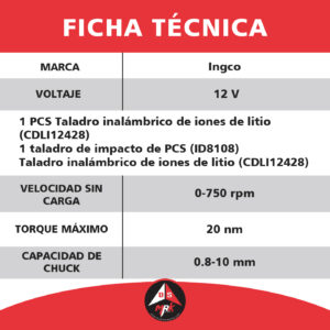 Kit INGCO combinado de perforación de 2 pcs CDLI12428+ID8108, COSLI23041