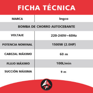 Bomba De Agua Autocebante 1×1 2hp, JP15008-5