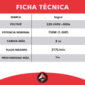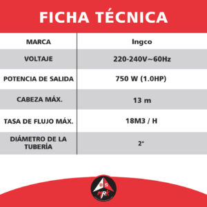 BOMBA DE AGUA 750W(1.0HP) 220 240V~60Hz, VPM75068-5