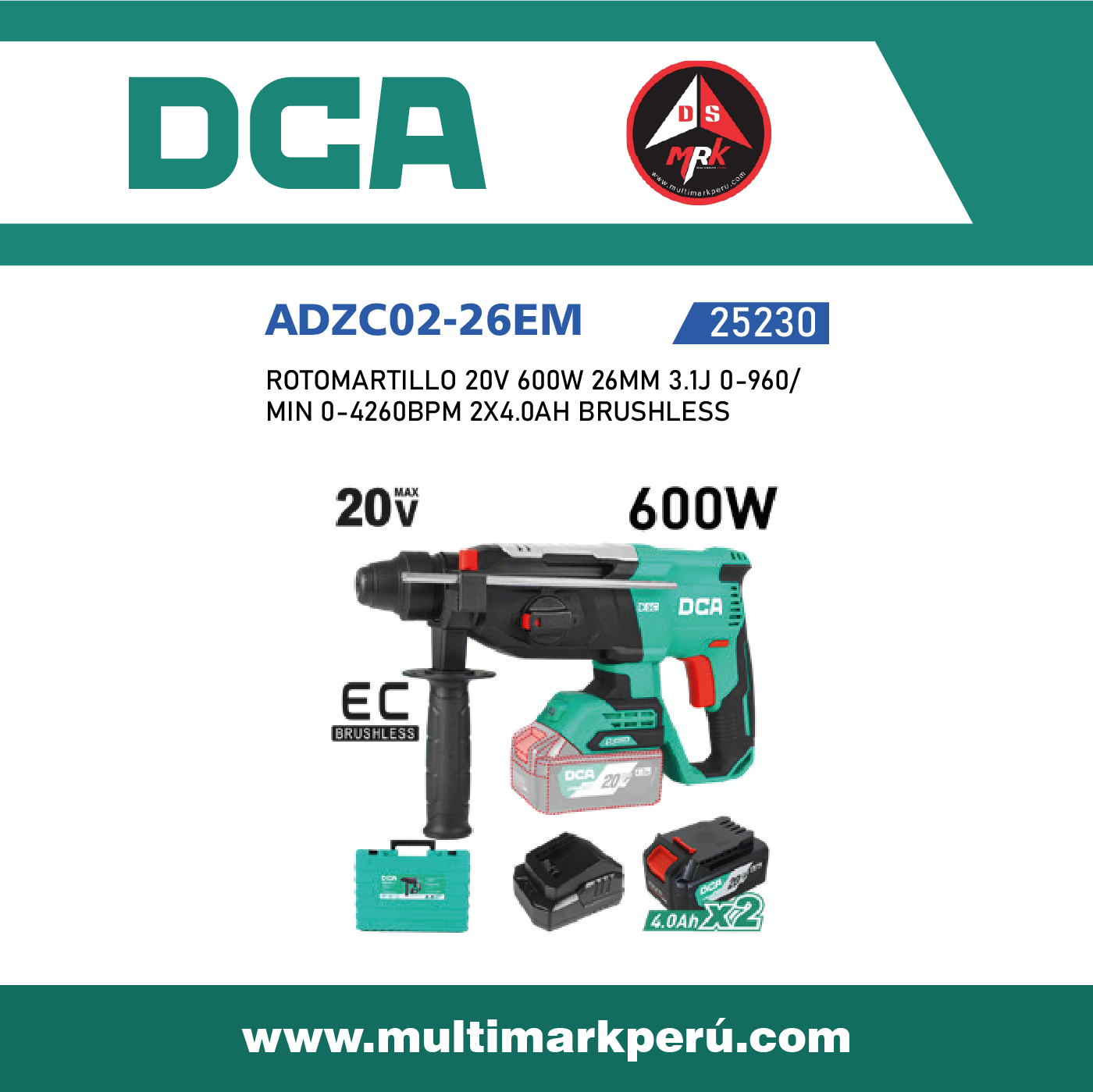 ROTOMARTILLO 20V 600W 26MM 3.1J 0-960/